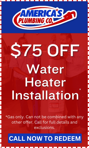 Not sure what your water heater needs? America’s Plumbing offers free estimates, so you can understand your options before any work begins. And when it’s time for a replacement, take advantage of $75 off water heater replacement. With honest recommendations, upfront pricing, and dependable service, you can feel confident you’ve called the right local plumbing company.